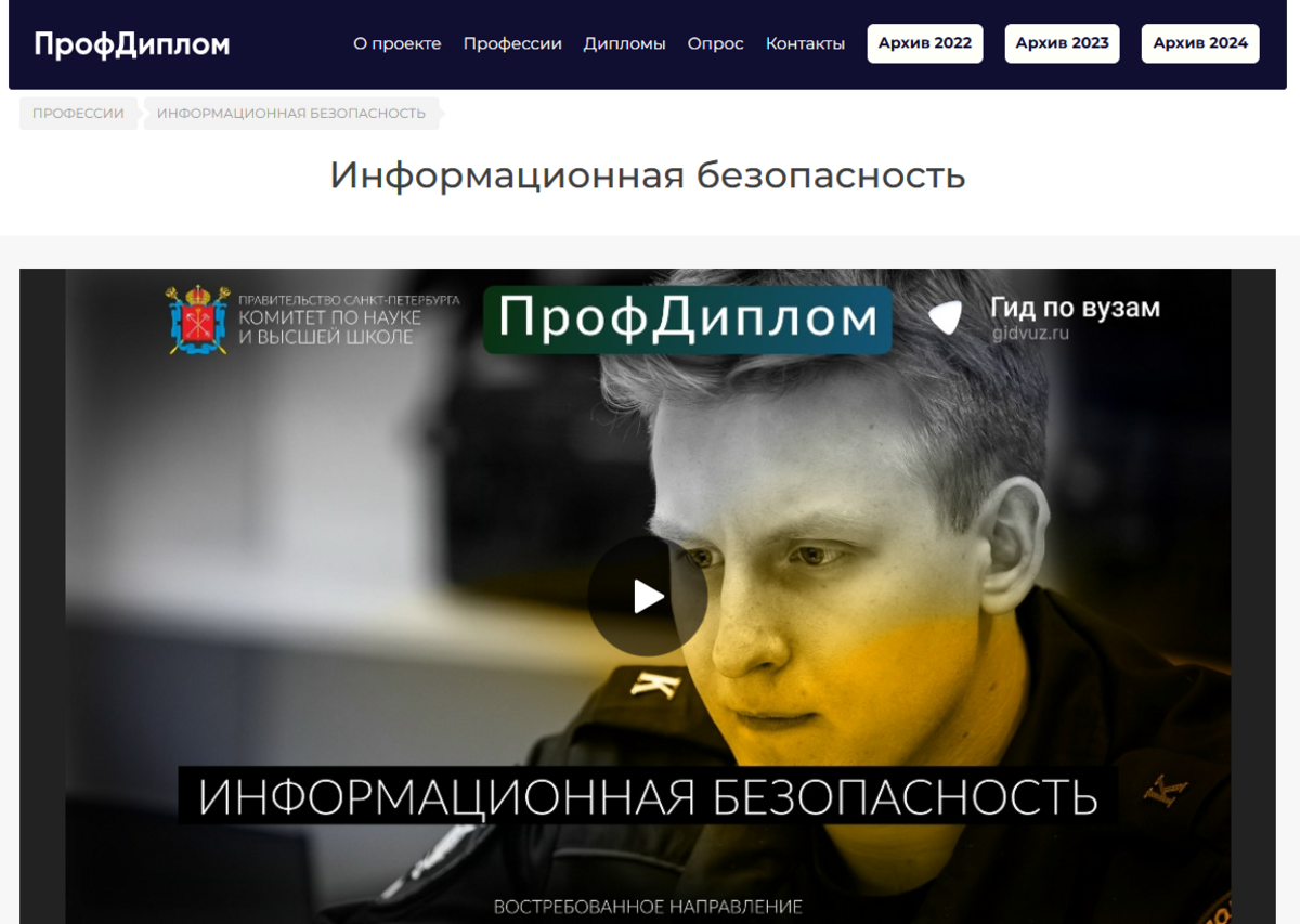 Каждый год на площадке публикуются порядка 25 видеороликов по актуальным профессиям и направлениям подготовки. В этом году, например, в проекте приняли участие ведущие вузы Петербурга и надежные работодатели, готовые открыть двери вчерашним выпускникам. Одним из ярких примеров реализации проекта стало видео, посвященное направлению «Информационная безопасность».